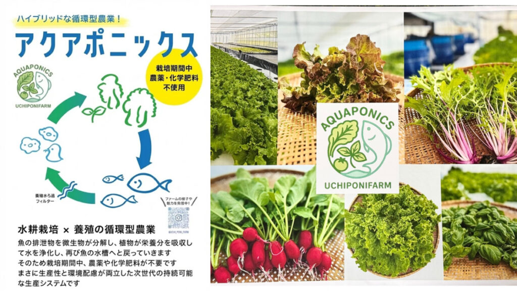 代表の内海幸一さんが手がけるのは、魚と野菜がお互いを支え合い育つ「アクアポニックス」という循環型農法。