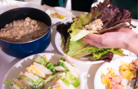 シャキシャキなフリルレタス、鮮やかに赤く色づいたラディッシュをいただき、調理させていただきました。